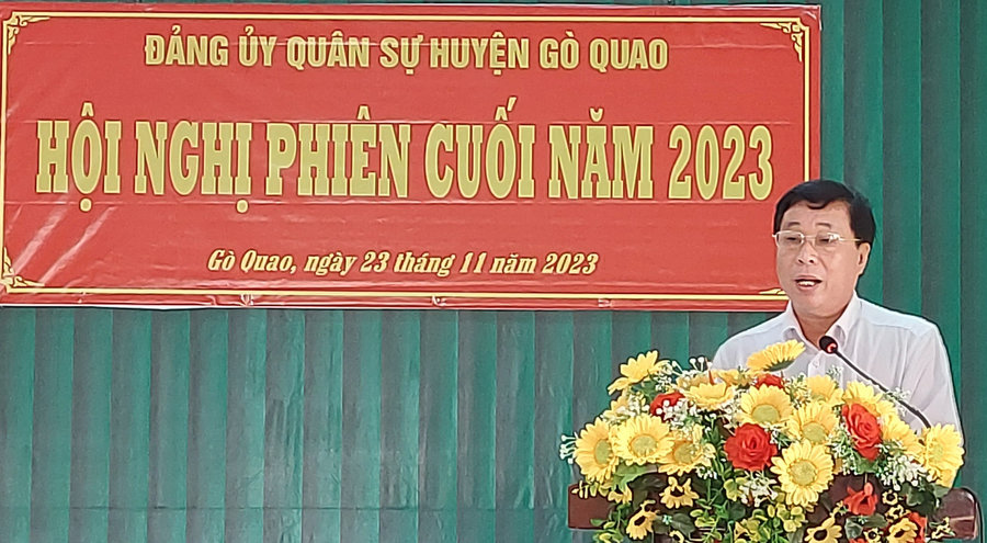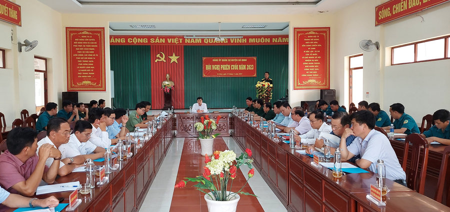 Năm 2023, Đảng ủy quân sự huyện Gò Quao đã tập trung lãnh đạo thực hiện tốt nhiệm vụ quân sự, quốc phòng đạt kết quả khá toàn diện, luôn bám sát Nghị quyết của Đảng ủy Quân sự tỉnh và thực hiện tốt Nghị quyết của Đảng ủy Quân sự huyện về công tác quân sự, quốc phòng. Đảng ủy Quân sự huyện thường xuyên đổi mới và nâng cao chất lượng hiệu quả công tác giáo dục chính trị tư tưởng, đặc biệt là thực hiện có hiệu quả việc khắc phục những hạn chế sau kiểm điểm theo tinh thần Nghị quyết Trung ương 4 khóa XI, XII, gắn với đẩy mạnh việc “Học tập và làm theo tấm gương đạo đức Hồ Chí Minh” trong cán bộ chiến sĩ và lực lượng vũ trang. Công tác huấn luyện xây dựng lực lượng thường trực; huấn luyện dân quân tự vệ, dự bị động viên đảm bảo đúng nội dung chương trình và quân số, trong huấn luyện bám sát phương châm “Cơ bản, thiết thực, vững chắc” và yêu cầu “nhanh, mạnh, chính xác”, từ đó chất lượng đạt khá, công tác diễn tập có nhiều tiến bộ. Công tác tuyển chọn và gọi công dân nhập ngũ thực hiện đúng qui trình, giao quân đạt chỉ tiêu; chính sách hậu phương quân đội được quan tâm thực hiện có hiệu quả. Công tác hậu cần kỹ thuật, tài chính phục vụ hoạt động thường xuyên được đảm bảo, tập trung quy hoạch, chỉnh trang xây dựng chính qui, doanh trại xanh, sạch, đẹp có chuyển biến tích cực. Phong trào thi đua Quyết thắng được triển khai thực hiện từng bước được nâng lên, gắn nội dung thi đua với nhiệm vụ chính trị của đơn vị và phong trào lực lượng vũ trang huyện tham gia“ chung sức xây dựng nông thôn mới”; phát động thực hiện tốt cuộc vận động “phát huy truyền thống, cống hiến tài năng, xứng danh Bộ đội Cụ Hồ; tổ chức các phong trào thi đua đột kích trong các nhiệm vụ, góp phần hoàn thành tốt nhiệm vụ được giao. Chỉ đạo thực hiện chặt chẽ công tác xây dựng lực lượng, đáp ứng yêu cầu nhiệm vụ. Trong đó, lực lượng thường trực quân số đạt 100%, lực lượng dân quân tự vệ đạt 1,22% so với dân số, đảng viên chiếm 25,36%, duy trì 11/11 Chi bộ quân sự có cấp ủy. Tổ chức kết nạp mới 270 đồng chí, cho ra 264 đồng chí. Lực lượng dự bị động viên biên chế các đơn vị của huyện, tỉnh, quân khu đạt 100%; xếp đúng, gần đúng chuyên nghiệp quân sự đạt 90,4%; đảng viên chiếm 16%. Công tác ngành Hậu cần tài chính thực hiện tốt cuộc vận động “Ngành Hậu cần Quân đội làm theo lời Bác Hồ dạy"; đảm bảo tốt cho nhiệm vụ SSCĐ và hoạt động thường xuyên. Tăng gia sản xuất có hiệu quả, thu nhập rau, củ, quả, cá các loại; thu lãi trên 417 triệu đồng. Đưa vào ăn thêm cho bộ đội, tái sản xuất, mua sắm thêm trang bị và sinh hoạt của cơ quan. Phối hợp các cơ quan, tham mưu Ban Chỉ đạo “Tết Quân - Dân" huyện tổ chức tốt các hoạt động “Tết Quân - Dân năm 2024 tại xã Thới Quản chặt chẽ, an toàn, đến nay đã hoàn thành 80% nội dung công việc. Chỉ đạo LLVT huyện tham gia khá tốt phong trào “LLVT huyện chung sức xây dựng nông thôn mới”. Đã huy động 25 SQ-QNCN và 128 lực lượng DQTV tham gia giúp dân khắc phục hậu quả thiên tai, lốc xoáy; tham gia sửa chữa cầu đường, phát hoang lề lộ và vệ sinh môi trường hơn 930 ngày công. Tổ chức sinh hoạt đối thoại dân chủ ở cơ sở đúng quy chế, chất lượng từng bước được nâng lên. Xây dựng và bàn giao 01 căn "Nhà đồng đội” cho đối tượng quân nhân chuyện nghiệp còn khó khăn về nhà ở, thăm tặng qùa gia đình chính sách, cán bộ nghỉ hưu, cán bộ thường trực nhân dịp lễ, tết.
