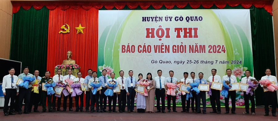 Kết thúc hội thi, Ban Tổ chức đã trao 3 giải A (trong đó 2 giải A cho Chi bộ Tuyên giáo, 01 giải A Đảng bộ xã Định Hòa; trao 4 giải B cho các đơn vị: Chi bộ Giáo dục – đào tạo, Chi bộ Văn hóa Thông tin, Chi bộ Tuyên giáo và Đảng bộ xã Vĩnh Hòa Hưng Nam; trao 5 giải C cho các đơn vị: Chi bộ Kiểm tra, Đảng bộ thị trấn Gò Quao, Chi bộ Tuyên giáo, Đảng bộ y tế, Chi bộ Lao động – Thương binh xã hội và 8 giải khuyến khích./.
