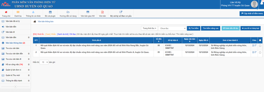 Việc triển khai xây dựng phòng họp không giấy, huyện Gò Quao đã phối hợp với Sở Thông tin và Truyền thông tỉnh Kiên Giang đã tổ chức tập huấn, hướng dẫn cụ thể để phục vụ cho việc thực hiện phòng họp không giấy. Phần mềm Quản lý văn bản và Điều hành (Văn phòng điện tử) đã được triển khai đảm bảo liên thông được 4 cấp chính quyền từ cấp xã đến cấp huyện, tỉnh, trung ương. Phần mềm được tích hợp chữ ký số. Đến nay, 100% các cơ quan, đơn vị thuộc UBND huyện, UBND các xã, thị trấn đã ứng dụng phần mềm vào công tác chỉ đạo, điều hành và gửi, nhận văn bản điện tử liên thông giữa các cơ quan trong huyện, liên thông với các bộ, ngành trung ương qua trục liên thông văn bản quốc gia. Tuân thủ các quy định về an toàn, anh ninh và bảo mật thông tin trong quá trình sử dụng phần mềm Quản lý văn bản và Điều hành theo các quy định của nhà nước.