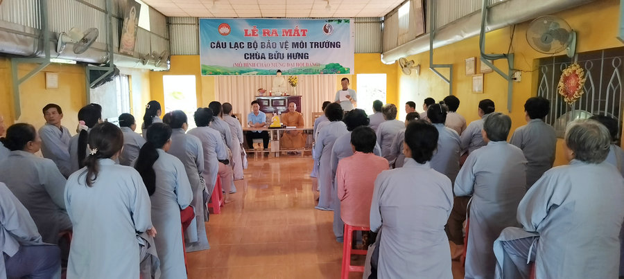 Ảnh: Mặt trận Tổ quốc huyện phối hợp Mặt trận Tổ quốc xã Vĩnh Hòa Hưng Bắc ra mắt mô hình Câu lạc bộ bảo vệ môi trường tại chùa Bửu Hưng, xã Vĩnh Hòa Hưng Bắc.