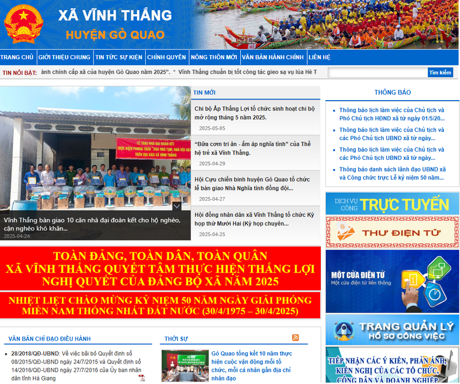Ảnh: Trang thông tin điện tử xã Vĩnh Thắng là một trong những trang hoạt động cơ bản và đảm bảo theo quy định.