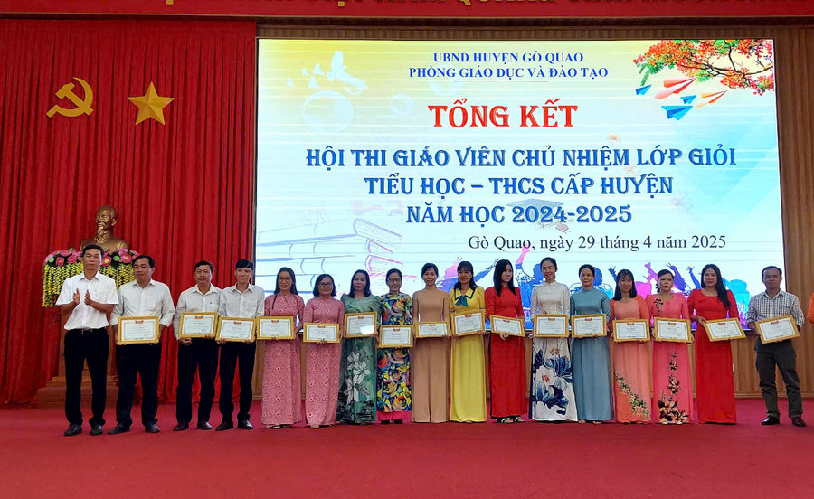Kết quả, đối với Tiểu học có 203 giáo viên đạt danh hiệu giáo viên chủ nhiệm lớp giỏi tiểu học cấp huyện năm học 2024-2025, trong đó, có 75 giáo viên đạt thành tích xuất sắc trong Hội thi được tặng giấy khen của Trưởng phòng giáo dục và đào tạo huyện. Đối với THCS có 40 giáo viên đạt danh hiệu giáo viên chủ nhiệm lớp giỏi THCS cấp huyện năm học 2024-2025, trong đó, có 16 giáo viên đạt thành tích xuất sắc trong Hội thi được tặng giấy khen của Trưởng phòng giáo dục và đào tạo huyện./.