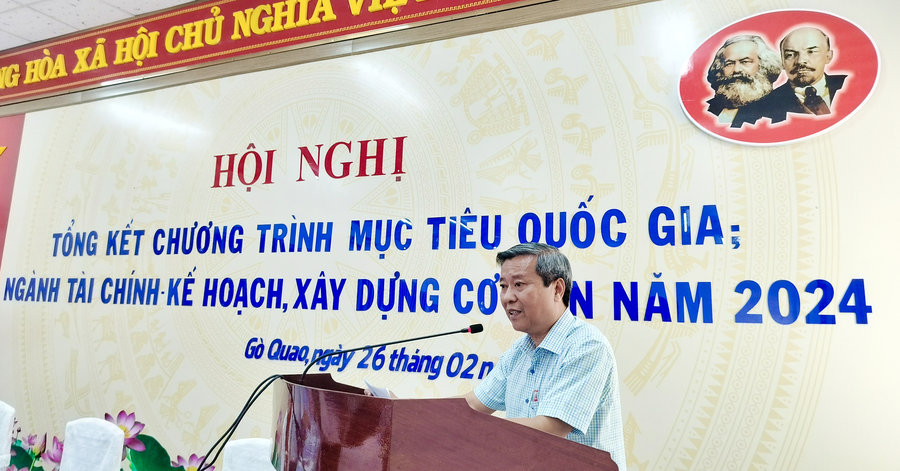 Phát biểu kết luận hội nghị, đồng chí Võ Văn Trà - Chủ tịch UBND huyện đánh giá cao những kết quả đạt được trong thực hiện các chương trình MTQG trên địa bàn huyện trong năm 2024. Trong thời gian tới, đồng chí yêu cầu các ngành, các xã, thị trấn đẩy mạnh hơn nữa công tác tuyên truyền cả chiều rộng và chiều sâu bằng nhiều hình thức phong phú, phát huy sức mạnh của cả hệ thống chính trị, nhằm nâng lên nhận thức về mục đích, ý nghĩa của việc thực hiện các chương trình MTQG, thống nhất cả ý chí và hành động trong nội bộ cán bộ đảng viên, công nhân viên chức và quần chúng nhân dân; gương mẫu trong thực hiện và có trách nhiệm tuyên truyền trong nhân dân tích cực hưởng ứng tham gia. Thành viên Ban chỉ đạo các Chương trình mục tiêu quốc gia huyện, các ngành có liên quan, các xã, thị trấn tiếp tục tăng cường đổi mới công tác chỉ đạo điều hành gắn với kiểm tra, giám sát thường xuyên việc thực hiện các chương trình MTQG; báo cáo định kỳ theo quy định hàng tháng, kết hợp chỉ đạo nhằm kịp thời hướng dẫn và tháo gỡ khó khăn, vướng mắc trong quá trình thực hiện. Phát huy tính tự lực tự cường, chủ động thực hiện ở cơ sở. Chọn nội dung, tiêu chí trọng tâm trọng điểm để tập trung thực hiện. Quan tâm nâng cao chất lượng, tinh thần trách nhiệm đội ngũ cán bộ ở cơ sở trong thực hiện. Các xã tiến hành tổng kết các Chương trình MTQG năm 2024 đánh giá hạn chế, tồn tại đồng thời xây dựng kế hoạch cụ thể thực hiện trong năm 2025.