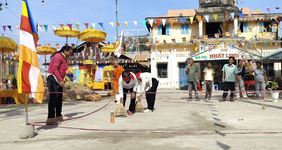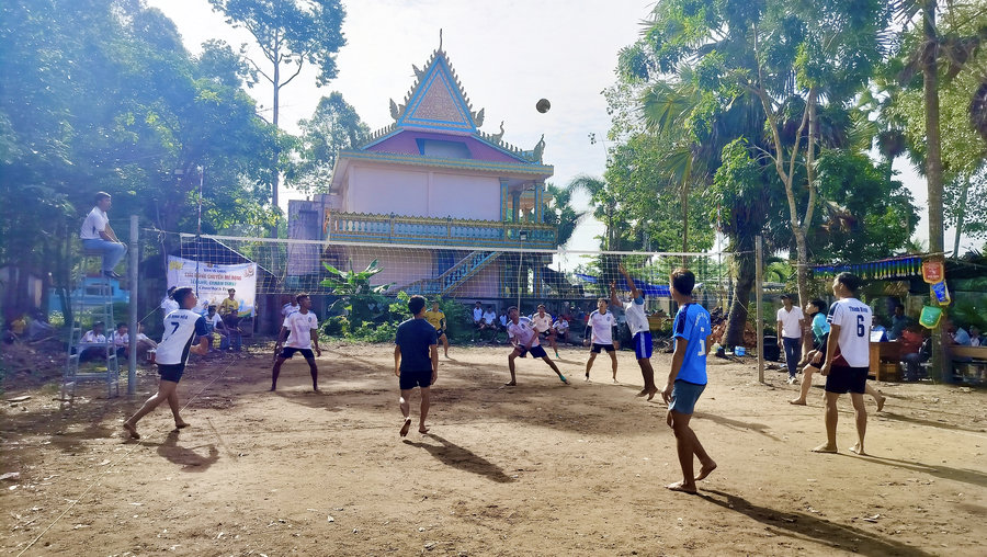 Ảnh: Giải bóng chuyền nam mở rộng tết Chôl Chnăm Thmây tại chùa Rạch Tìa.