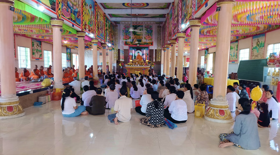 Ảnh: Đồng bào Khmer cùng nhau dâng lễ và cầu nguyện tại chùa trong ngày tết Chôl Chnăm Thmây.