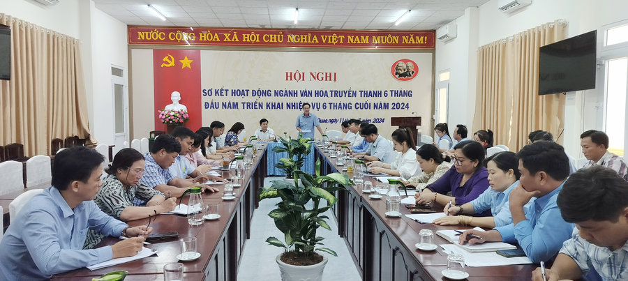 Ảnh: Đồng chí Lê Kim Khoa – Phó Chủ tịch UBND huyện (đứng), phát biểu chỉ đạo tại hội nghị sơ kết hoạt động ngành văn hóa truyền thanh 6 tháng đầu năm, triển khai phương hướng, nhiệm vụ 6 tháng cuối năm 2024 gắn với sơ kết 06 tháng đầu năm 2024 về công tác chuyển đổi số.