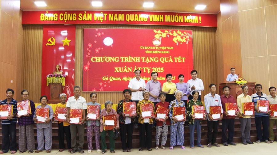 Trước thềm năm mới xuân Ất Tỵ 2025, 500 người dân là hộ nghèo, hộ có hoàn cảnh khó khăn tại huyện Gò Quao được nhận quà, mỗi phần quà trị giá 600.000 đồng. Đây là hoạt động ý nghĩa phát huy truyền thống "Tương thân, tương ái", "Lá lành đùm lá rách" của dân tộc, góp phần sẻ chia khó khăn để người nghèo, hoàn cảnh khó khăn có điều kiện vui Xuân, đón Tết.