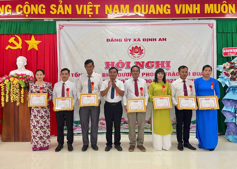 Dịp này, Ban Chỉ đạo Phong trào thi đua “Dân vận khéo” xã Định An trao Giấy chứng nhận công nhận 38 mô hình, điển hình “Dân vận khéo” giai đoạn 2021-2025. Ủy ban nhân dân xã Định An tặng giấy khen 7 tập thể đạt thành tích tiêu biểu trong thực hiện phong trào thi đua “Dân vận khéo” giai đoạn 2021-2025; Đảng ủy xã Định An tặng giấy khen cho 3 cá nhân đạt thành tích hoàn thành tốt nhiệm vụ trong phong trào thi đua “Dân vận khéo” giai đoạn 2021-2025./.